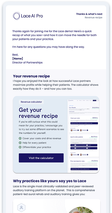 The Lace email system was designed to move fast, stay coherent, and convert. With modular design language and visual storytelling, we accelerated campaign creation, simplified approvals, and gave both patient and provider audiences a consistent, engaging experience.